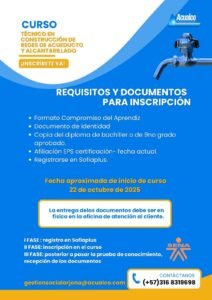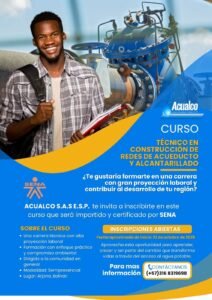 La empresa ACUALCO S.A.S. E.S.P., empresa operadora del servicio de acueducto en los municipios de Arjona y Turbaco, en alianza con el Servicio Nacional de Aprendizaje (SENA), abrió inscripciones para el curso “Técnico en Construcción de Redes de Acueducto y Alcantarillado”, una oportunidad de formación con alto impacto social y laboral dirigida a jóvenes y habitantes de su zona de influencia.