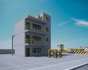 • Entrenamiento en trabajo en alturas: estructuras verticales para simular rescates y maniobras en altura, uso de líneas de vida, arneses y equipos anticaídas.