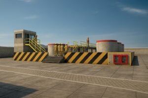 • Pista HazMat: circuito para intervención en emergencias con materiales peligrosos, incluyendo simulación de fugas, derrames y zonas contaminadas.