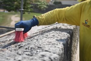 El líder del área de Obras de la Etcar, Maro Zapateiro Altamiranda, explica “De no ser retirada la costra, la superficie muraria detrás de ella podría meteorizarse (degradarse) y debilitarse, por lo cual es conveniente hacer el retiro o limpieza de este material de forma cíclica, tal como lo hemos venido haciendo desde años anteriores”.