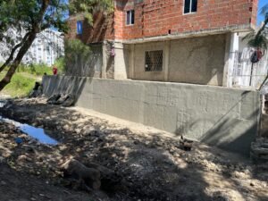 El director del Departamento Administrativo de Valorización Distrital, Rafael Morales, explicó que la solución implementada consistió en la construcción de un muro de contención tipo Invías, similar a los utilizados en grandes taludes de carreteras. “Se trata de un muro en concreto de 30 centímetros de espesor, reforzado con varilla 5/8, con pata de anclaje y zapata estructural que evita desplazamientos, además de una protección en piedra para impedir filtraciones de agua. Esta obra garantiza la estabilidad de la vivienda a largo plazo y, adicionalmente, incrementa el valor del predio”, señaló Morales.