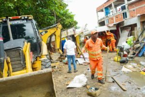 En medio de un operativo conjunto liderado por la Inspección de Policía de la Comuna 2, con el acompañamiento de la Alcaldía Mayor de Cartagena, en articulación con la Policía Metropolitana, avanza a esta hora el procedimiento de desalojo de comercios ilegales que durante décadas han invadido predios en el sector Papayal de Chambacú, de cara a la recuperación del espacio público y dotar de espacios para la construcción del  Complejo Deportivo Nuevo Chambacú que—con avances que superan el 50%— dará vida a un espacio para el disfrute de miles de cartageneros y visitantes, visionado por el alcalde Dumek Turbay Paz.