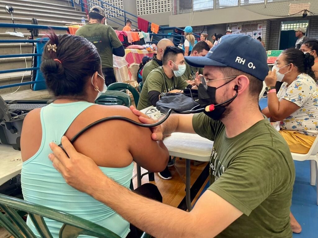 “Se trata de un equipo altamente capacitado en medicina de emergencias, con entrenamiento táctico para identificar alertas tempranas en contextos de desastre. Hemos recorrido varios alojamientos; ayer estuvimos en el Coliseo de Ferias Miguel Villamil Muñoz y hoy atendemos a la comunidad en el Coliseo Miguel ‘Happy’ Lora”, explicó José Vergara, médico asesor de la Secretaría de Salud de Montería.