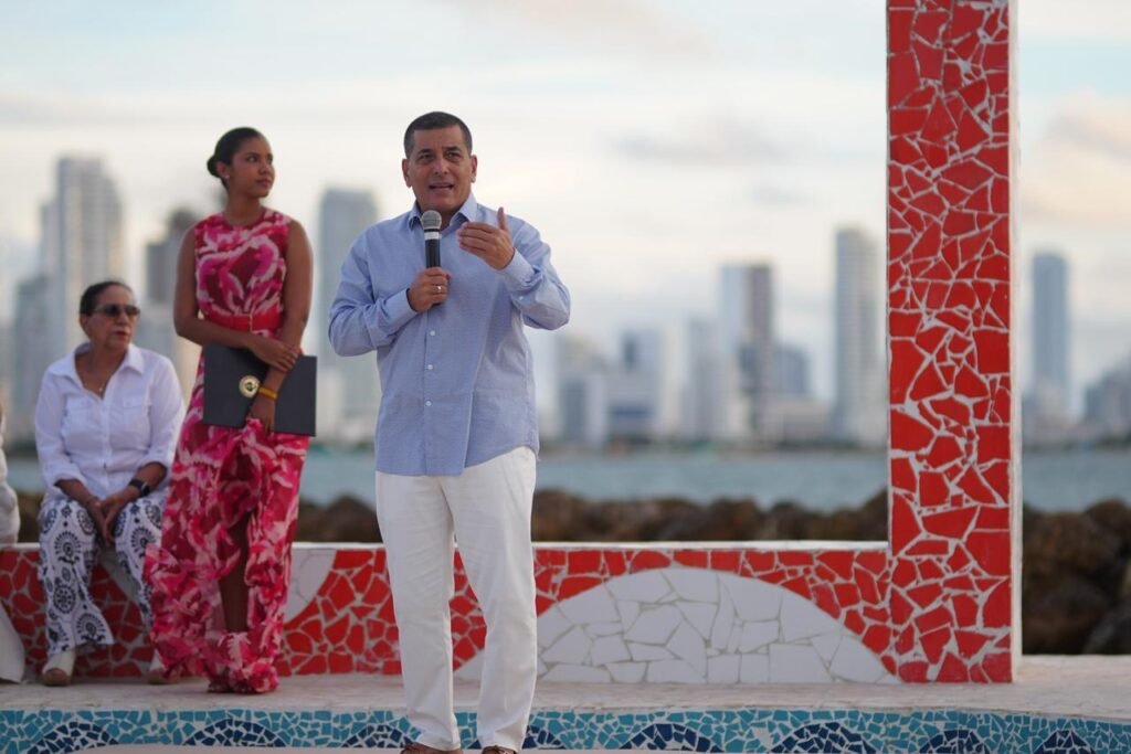 En medio de un acto simbólico realizado en la tarde de este miércoles, el alcalde Mayor de Cartagena, Dumek Turbay Paz, develó la nueva cara del recuperado Monumento a la Unión de los Océanos, punto de encuentro y disfrute de postales que combinan el atardecer cartagenero y el Mar Caribe, sobre la Avenida Santander.