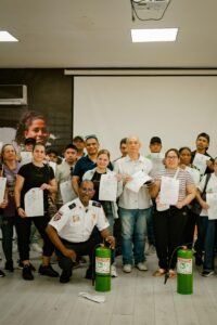 La capacitación fue liderada por el teniente Franklin Hamilton Velásquez, quien orientó a los asistentes sobre la normativa actual en seguridad contra incendios, el uso adecuado de extintores, el manejo seguro de conexiones eléctricas y las acciones clave para actuar de manera oportuna ante una emergencia.