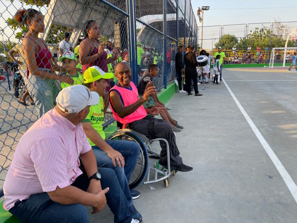 La refacción se realizó luego de que la comunidad solicitara al ex gobernador, Dumek Turbay, apoyo para recuperar el parque, que estaba destruido y devolverlo al barrio, habitado en su gran mayoría por discapacitados.