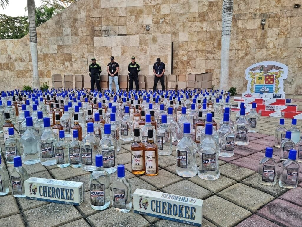 En un operativo que ha sido calificado como uno de los más contundentes en los últimos años en el centro del departamento, la Gobernación de Bolívar, en coordinación con la Policía Fiscal y Aduanera (POLFA) y el Departamento de Policía de Bolívar, logró la incautación de más de 1.000 botellas de licor presuntamente adulterado y 742 cajetillas de cigarrillos de contrabando en el municipio de Calamar.