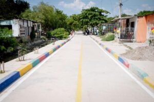 Son 686 metros lineales de vía, con un ancho promedio de 5.6 metros y un espesor de 22 centímetros, acompañados de 1.375 metros cuadrados de andenes y 1.356 metros lineales de bordillos. Una obra que no solo mejora la movilidad, sino que devolvió la ilusión a una comunidad olvidada.