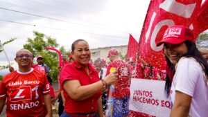 Mientras la candidata avanzaba en su recorrido por los municipios del departamento, en Cartagena equipos de la Marea Roja realizaron actividades simultáneas en más de 23 sectores de distintas Unidades Comuneras de Gobierno, socializando casa a casa la propuesta bandera 100M, una iniciativa que busca brindar apoyo financiero a 100 mil mujeres emprendedoras de Bolívar.