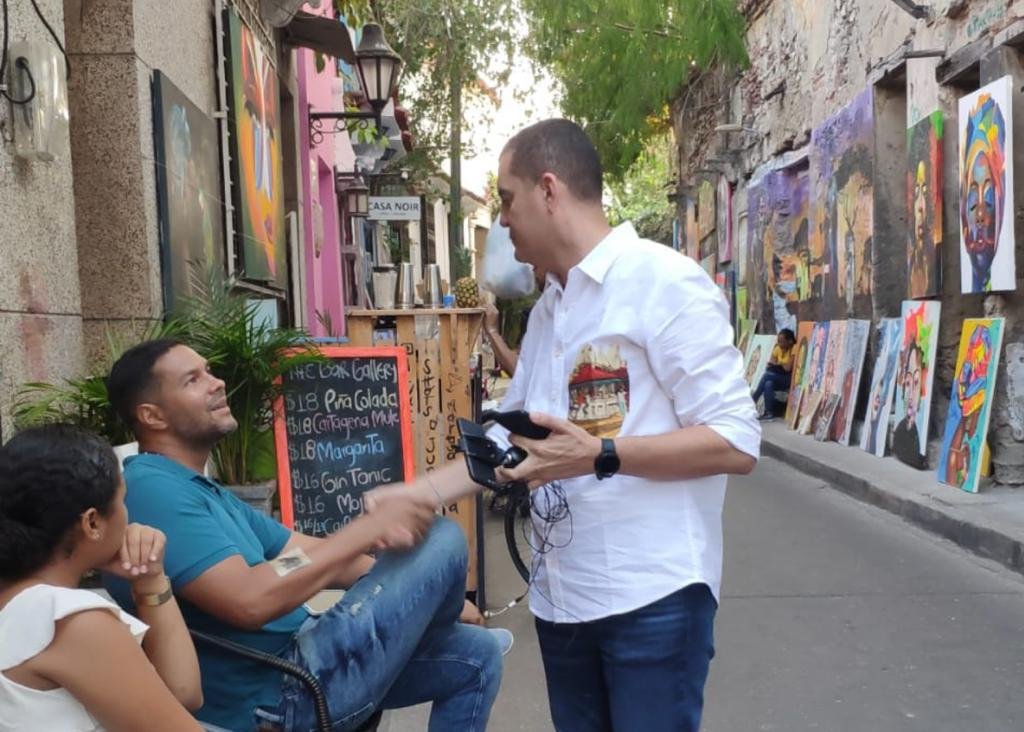 El conocido abogado, quien recoge firmas a través del grupo “Cartagena Fuerte y Libre” para avalar su aspiración a la Alcaldía, en un recorrido por las diferentes calles del Centro Histórico se percató del talento local que está guardado sobre todo en el legendario barrio de Getsemani.