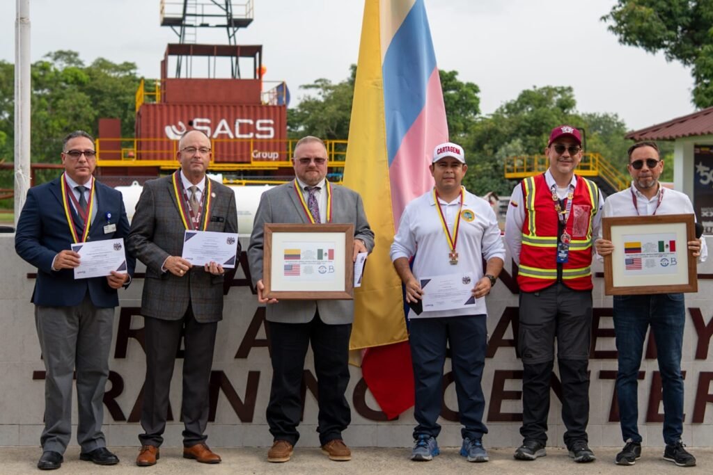 En el marco de la Escuela 59 para Bomberos en Español, evento internacional liderado por SACS Group que reúne a más de 320 bomberos y brigadistas de 14 países para capacitarse en la atención de emergencias industriales complejas, bajo estándares de clase mundial y con el aval académico de Texas A&M University (TEEX); el director del Cuerpo de Bomberos de Cartagena, Jhony Pérez Sayas, recibió la condecoración en nombre de la entidad bomberil de la ciudad, a través de la medalla _Guardián de la Orden Vitas Servando- Salvando Vidas_.