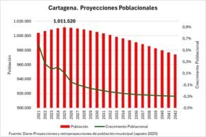 La tendencia se mantendrá en los años siguientes y para 2042, Cartagena tendría 974.086 habitantes, cifra similar a la de 2018, aunque con una estructura poblacional muy distinta.