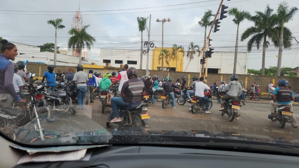 Desde hace una hora, grupos de mototaxistas iniciaron las concentraciones en inmediaciones de la Bomba del Amparo con bloqueos de las vías, lo que obligó a Transcaribe a suspender la operación.