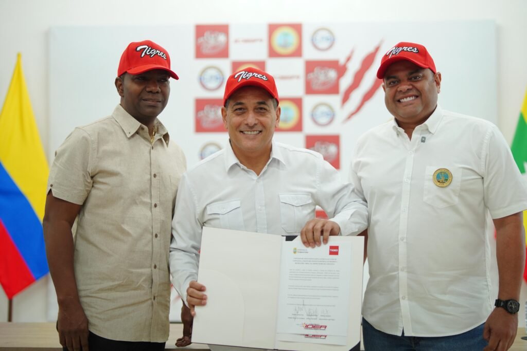 Con el acompañamiento de la Alcaldía Mayor de Cartagena, a través del Instituto Distrital de Deporte y Recreación (IDER), el equipo Tigres seguirá representando a la ciudad en la Liga Profesional de Béisbol Colombiano. Hoy, en el Palacio de La Aduana, se selló un acuerdo histórico con Édinson Rentería, representante legal del equipo, que ratifica que la pelota caliente no dejará de lanzarse en Cartagena; y así, seguirá sin inconvenientes uno de los símbolos deportivos más queridos por los cartageneros.