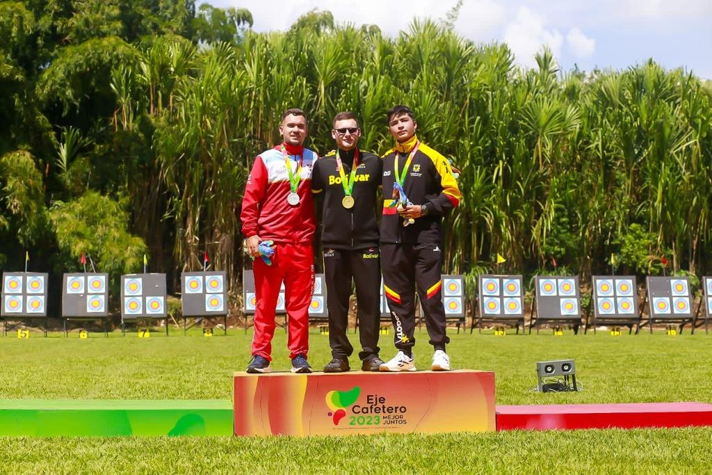 El destacado deportista bolivarense, Santiago Arcila, demostró su destreza y precisión al lograr la primera medalla de oro para el departamento en la modalidad de Recurvo Masculino 70 Mts, alcanzando un impresionante puntaje de 675 sobre 720 posibles.