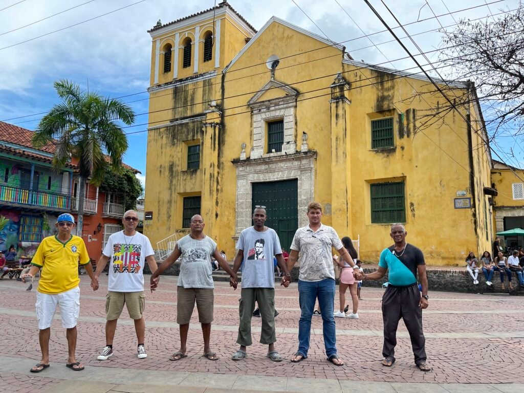 Osvaldo Gaviria De Avila, raizal; William González, nativo; Plutarco Meléndez, nativo, y Marcos Vargas, presidente de la Junta de Acción Comunal de Getsemaní, agradecen a la administración distrital que se haya llevado el tractor, y esperan no verlo de nuevo.
